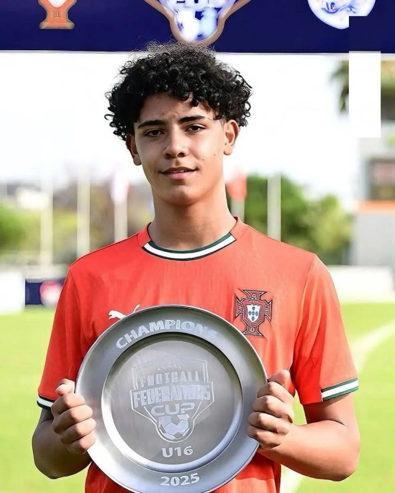 The description places Rodríguez and Aveiro in the special box or VIP seating during the game, indicating the elite level of observation afforded to the family. After the final whistle, gaining direct access to the pitch highlights the star treatment that follows CR Jr. and his family. This environment is crucial: while it provides comfort and proximity, it also emphasizes the bubble of privilege and scrutiny in which the young footballer develops. The entire sequence—watching from above, then immediately descending—shows a seamless transition between spectator support and hands-on, personal encouragement.2025 © RayanWorld.com