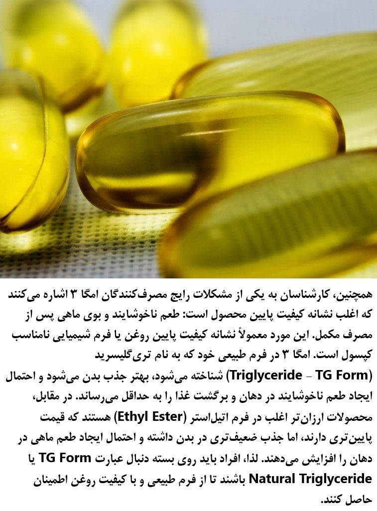Furthermore, experts point to a common problem among Omega-3 consumers that is often a sign of low product quality: the unpleasant taste and fishy odor after taking the supplement. This is usually an indication of low-quality oil or an inappropriate chemical form of the capsule. Omega-3 in its natural form, known as Triglyceride (TG Form), is better absorbed by the body and minimizes the chance of an unpleasant taste in the mouth and regurgitation. In contrast, cheaper products are often in the Ethyl Ester form, which is lower in price but has poor absorption in the body and increases the likelihood of a fishy taste in the mouth. Hence, individuals should look for the term TG Form or Natural Triglyceride on the packaging to ensure they are getting the natural, high-quality form of the oil. 2026 © RayanWorld.com