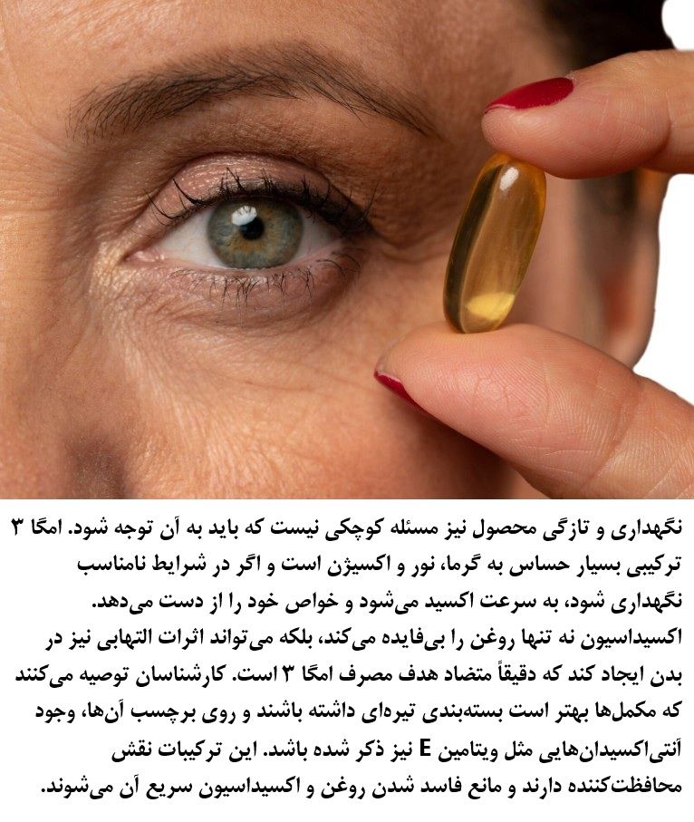 Storage and product freshness is also not a minor issue that needs attention. Omega-3 is a compound highly sensitive to heat, light, and oxygen, and if stored in inappropriate conditions, it quickly oxidizes and loses its properties. Oxidation not only renders the oil useless but can also create inflammatory effects in the body, which is exactly the opposite of the purpose of consuming Omega-3. Experts recommend that supplements should ideally have dark packaging and their label should also mention the presence of antioxidants such as Vitamin E. These compounds play a protective role and prevent the rapid spoilage and oxidation of the oil. 2026 © RayanWorld.com