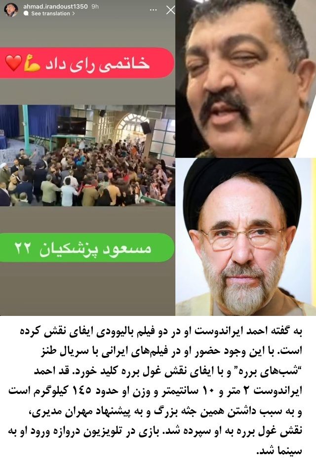 While details about this international security work are often sensationalized, this facet of his life adds an intriguing layer to his public persona, suggesting a life of diverse experiences outside the confines of the Iranian film industry and underscoring his suitability for protective roles.Ahmad Irandoost's public persona is a blend of his imposing on-screen characters and his active engagement with social and political discourse. His stature and distinctive look make him instantly recognizable, which he leverages to maintain a public profile. He has also engaged with the political landscape of Iran, notably offering his support to Hassan Rouhani during the 2017 Iranian presidential election.2025 © RayanWorld.com