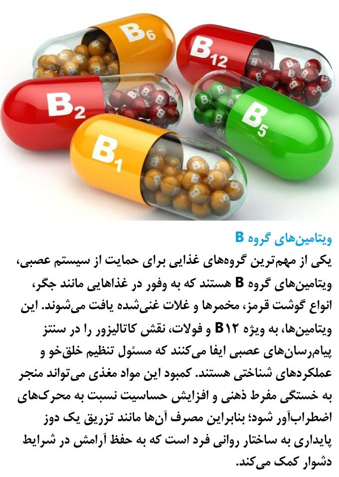 Furthermore, B-complex vitamins are vital for supporting the nervous system, found abundantly in liver, red meat, yeast, and fortified grains. These vitamins, especially $B_{12}$ and folate, act as catalysts in the synthesis of neurotransmitters responsible for regulating mood and cognitive functions. A deficiency in these nutrients can lead to profound mental fatigue and increased sensitivity to anxiety-inducing stimuli. Incorporating them into your diet is like injecting a dose of stability into your psychological structure, helping to maintain calm even in difficult circumstances.2025 © RayanWorld.com