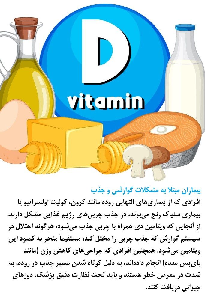 People suffering from inflammatory bowel diseases like Crohn’s, ulcerative colitis, or celiac disease often have difficulty absorbing dietary fats. Since Vitamin D is absorbed alongside fat, any gastrointestinal disorder that impairs fat absorption directly leads to a deficiency. Furthermore, individuals who have undergone weight-loss surgeries, such as gastric bypass, are at extreme risk due to the shortening of the absorption path in the intestine and must receive corrective doses under strict medical supervision. 2025 © RayanWorld.com