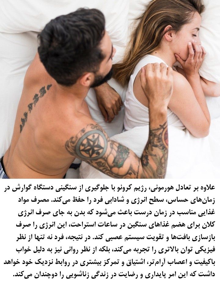 Beyond hormonal balance, the Chrono Diet maintains a person's energy and vitality by preventing digestive heaviness during sensitive times. Consuming the right foods at the right time allows the body to spend its energy on tissue repair and nervous system strengthening rather than heavy digestion during rest hours. Consequently, the individual experiences higher physical capacity and greater mental focus in intimate relationships due to quality sleep and calmer nerves, doubling satisfaction in married life.