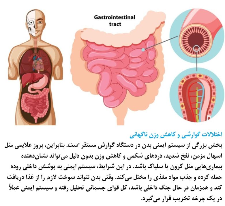A large portion of the body's immune system is located in the digestive tract. Therefore, chronic diarrhea, severe bloating, abdominal pain, and unexplained weight loss can be signs of diseases like Crohn's, ulcerative colitis, or Celiac disease. In these conditions, the immune system attacks the lining of the intestines, disrupting nutrient absorption. When the body cannot get the necessary fuel from food while fighting an internal war, its overall physical strength declines, putting the immune system in a cycle of destruction.