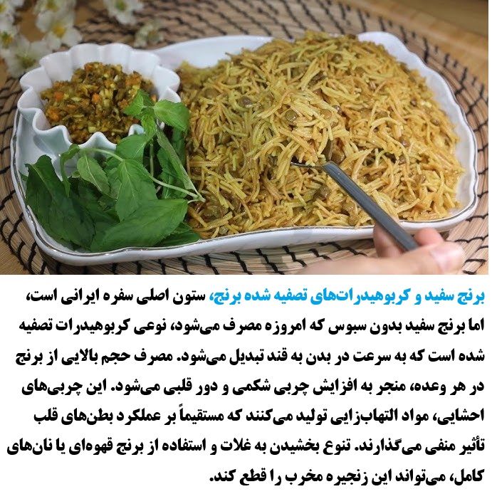 White Rice and Refined Carbohydrates Rice is the main pillar of the Iranian table, but the bran-free white rice consumed today is a type of refined carbohydrate that quickly turns into sugar in the body. Consuming high volumes of rice in every meal leads to increased abdominal and pericardial fat. These visceral fats produce inflammatory substances that directly negatively affect the performance of the heart's ventricles. Diversifying grains and using brown rice or whole-grain breads can break this destructive chain. 2026 © RayanWorld.com