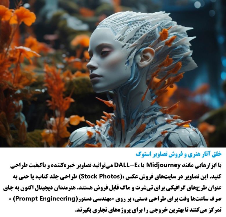 Creating Digital Art and Selling Stock Imagery With tools like Midjourney or DALL-E, you can design stunning, high-quality images. These visuals can be sold on stock photo websites, used for book covers, or even applied as graphic designs for t-shirts and mugs. Digital artists are now shifting from spending hours on manual design to focusing on "Prompt Engineering" to achieve the best outputs for commercial projects.