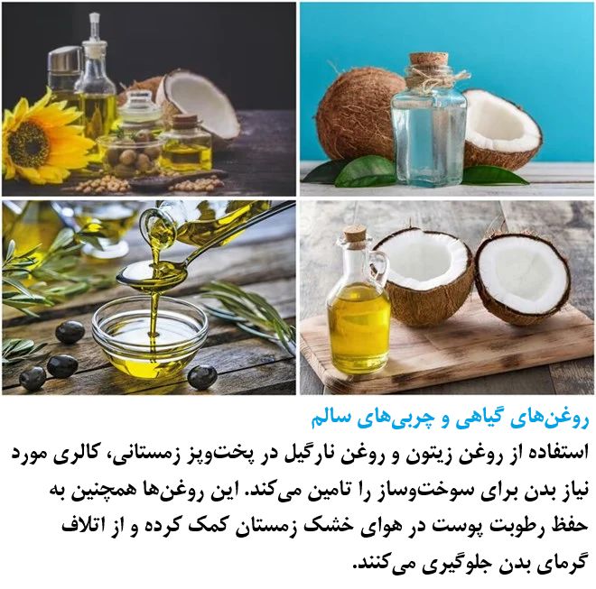 Vegetable Oils and Healthy Fats Using olive oil and coconut oil in winter cooking provides the calories needed for the body's metabolism. These oils also help maintain skin moisture in dry winter air, preventing the loss of body heat.
