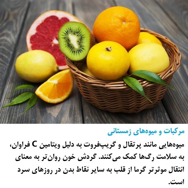 Winter Citrus and Fruits Fruits like oranges and grapefruits help maintain vascular health due to their abundant Vitamin C. Smoother blood circulation means a more effective transfer of heat from the heart to the rest of the body on cold days.