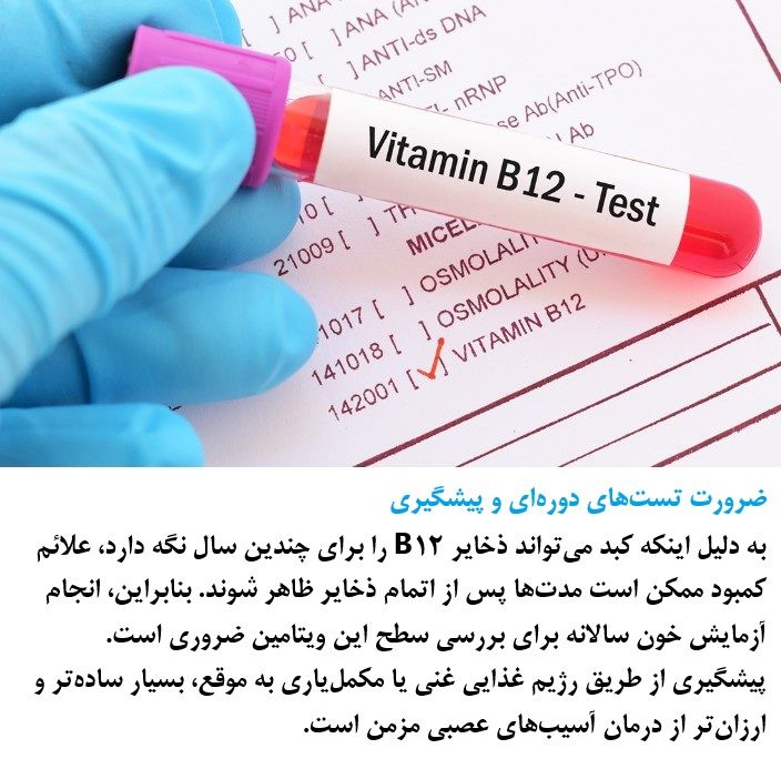Because the liver can store B12 for several years, symptoms of deficiency may not appear until long after the stores are exhausted. Therefore, an annual blood test to check the levels of this vitamin is essential. Prevention through a rich diet or timely supplementation is much simpler and cheaper than treating chronic nerve damage.