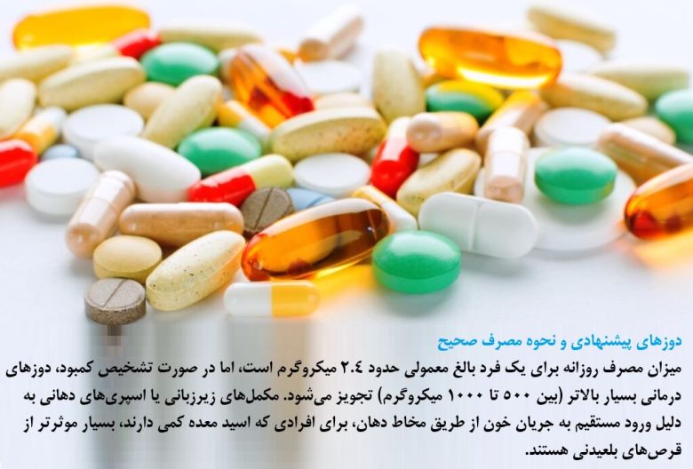 The daily intake for a typical adult is about 2.4 micrograms, but if a deficiency is diagnosed, therapeutic doses are much higher (between 500 to 1000 micrograms). Sublingual (under-the-tongue) supplements or oral sprays are much more effective than swallowable pills for people with low stomach acid, as they enter the bloodstream directly through the oral mucosa.