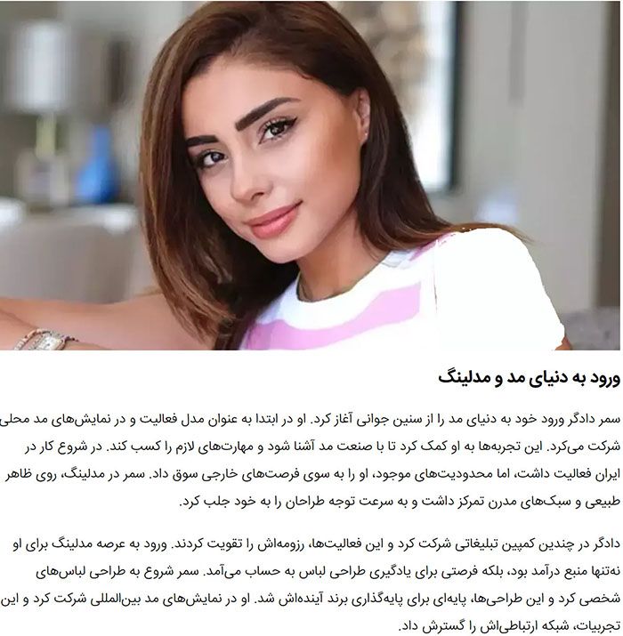 As a fashion designer, Dadgar is known for a style that emphasizes elegance, modernity, and a personal touch. She has often spoken about the importance of self-expression through clothing, viewing fashion as a tool for empowerment. Her work typically reflects a sophisticated understanding of form and fabric, catering to women who value both comfort and high-end aesthetics. Through her brand, she has managed to carve out a niche for herself, proving that her identity extends far beyond her associations with famous figures.